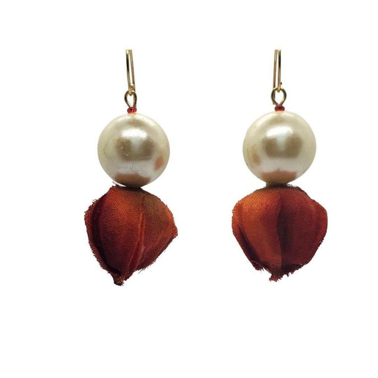 Flower Bud Pearl Earrings Details: